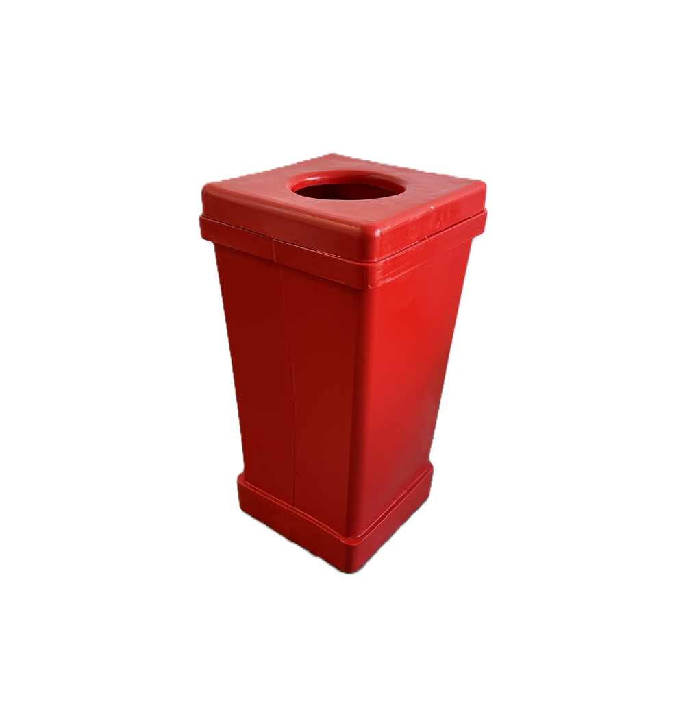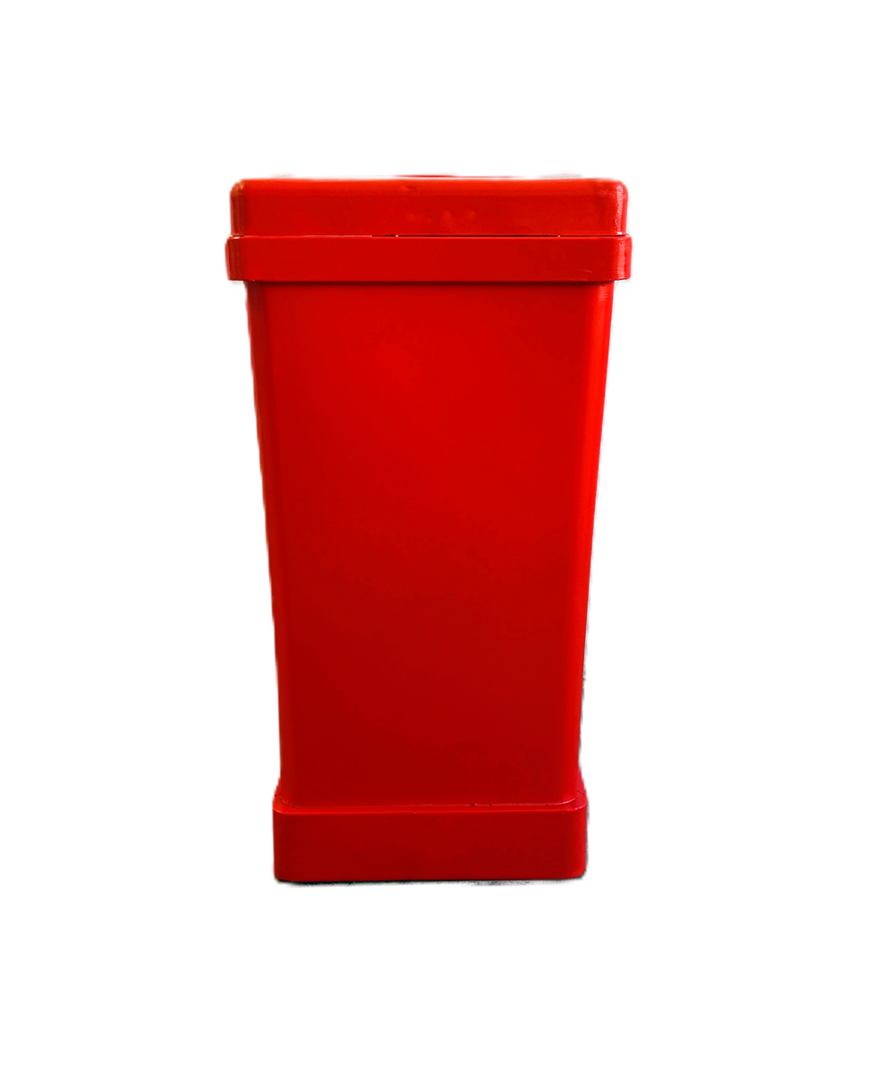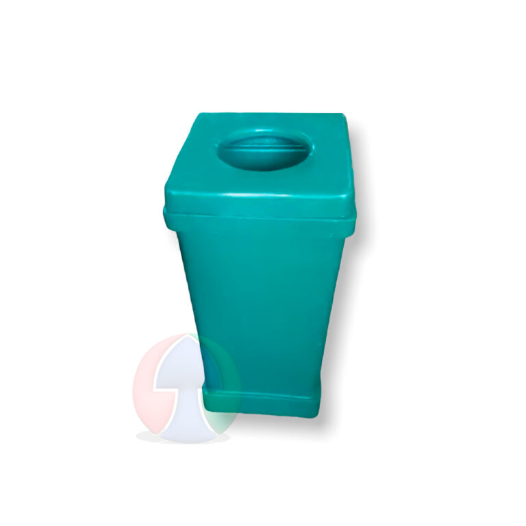 Cesto papelero de 130 litros, de pie, cuadrado, con tapa y boca de carga superior.